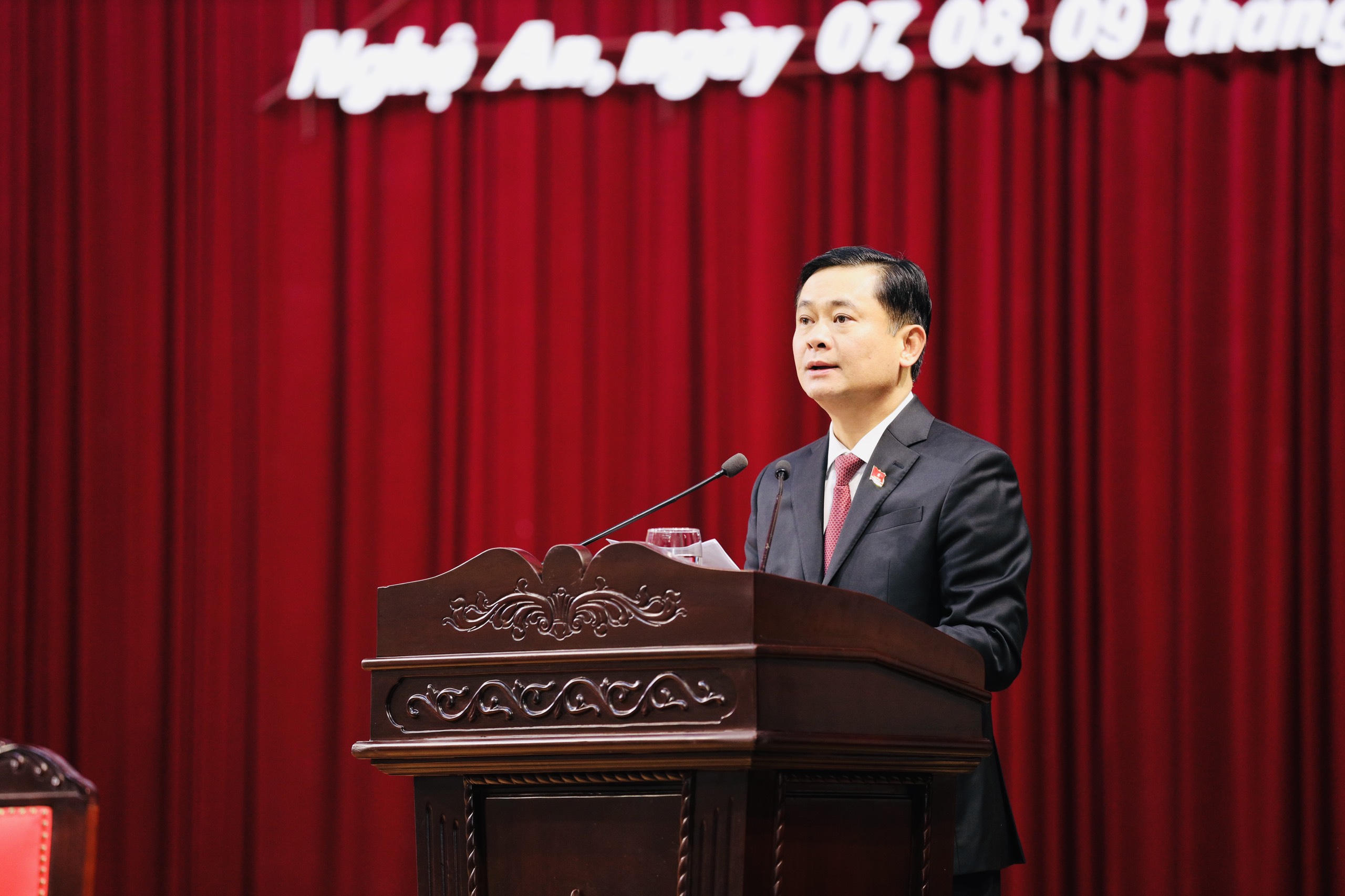 Bí thư Tỉnh ủy Nghệ An Thái Thanh Quý phát biểu khai mạc kỳ họp thứ 11 |