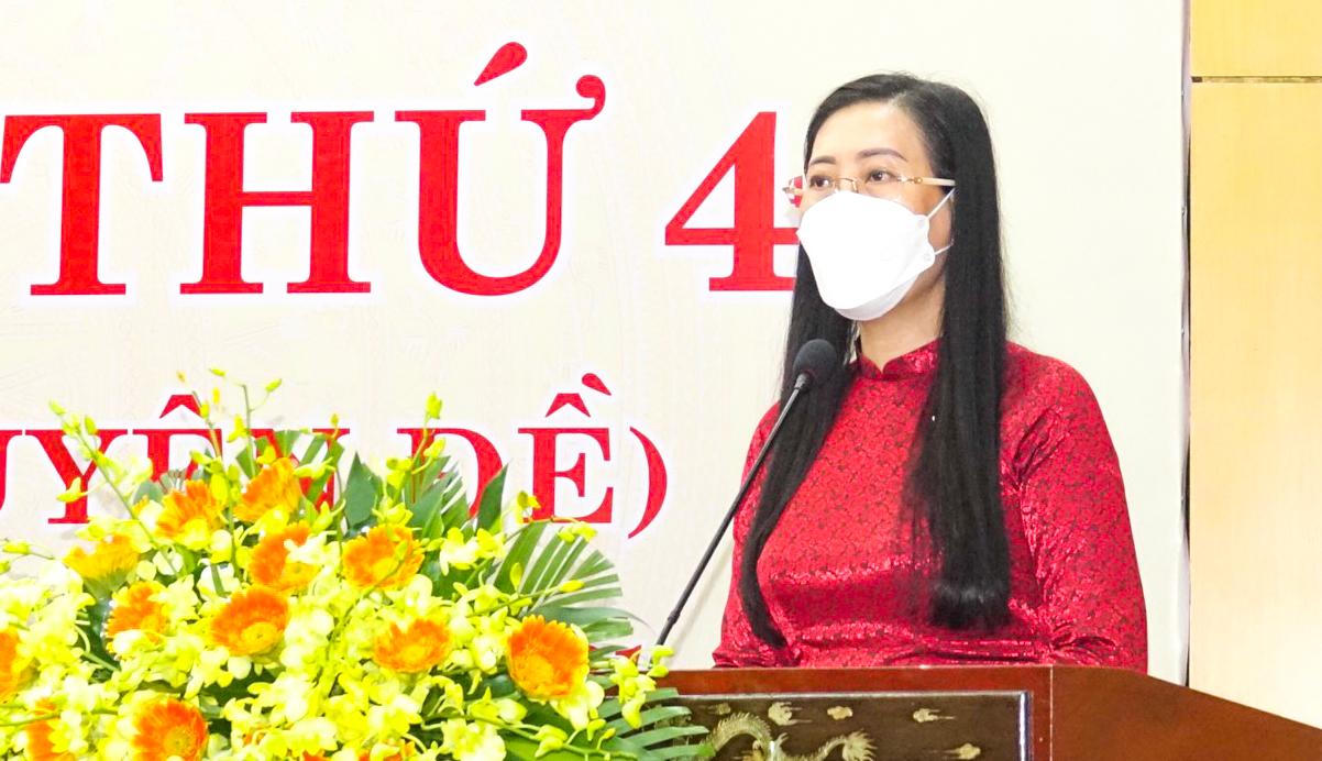 Ủy viên Trung ương Đảng, Bí thư Tỉnh ủy, Chủ tịch HĐND tỉnh Quảng Ngãi Bùi Thị Quỳnh Vân phát biểu tại kỳ họp. |