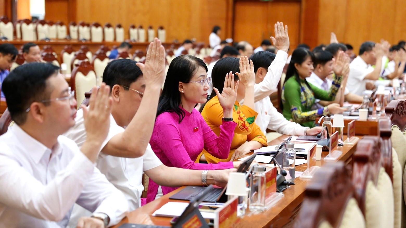Các đại biểu tiến hành biểu quyết nhất trí thông qua các Nghị quyết |