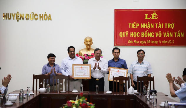 Ngày 06/11/2019 tại UBND Huyện Đức Hòa, tỉnh Long An, Công ty Cổ phần Phát triển và Kinh doanh Nhà HDTC đã ủng hộ 1 tỷ đồng Quỹ học bổng mang tên nhà cách mạng tiền bối Võ Văn Tần. Đặc biệt hoạt động có sự hiện diện của Nguyên Chủ tịch Nước Trương Tấn Sang cũng là người sáng lập ra Quỹ học bổng này.