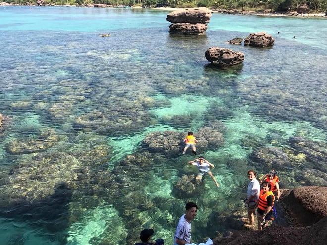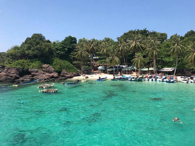 Lần đầu đặt chân đến đây, bạn sẽ phải trầm trồ đầy phấn khích khi được ngắm nhìn hòn đảo xanh mướt với hàng dừa đong đưa trong gió, nước biển xanh ngọc trong vắt nhìn tận đáy cùng với bờ cát trắng mịn màng mang một dáng vẻ hoang sơ, chưa có dấu vết của sự khai phá.