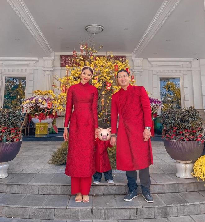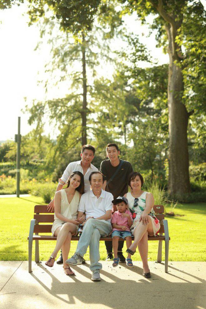 Hoa hậu Dương Thùy Linh cùng bố mẹ đẻ, em trai và chồng con.