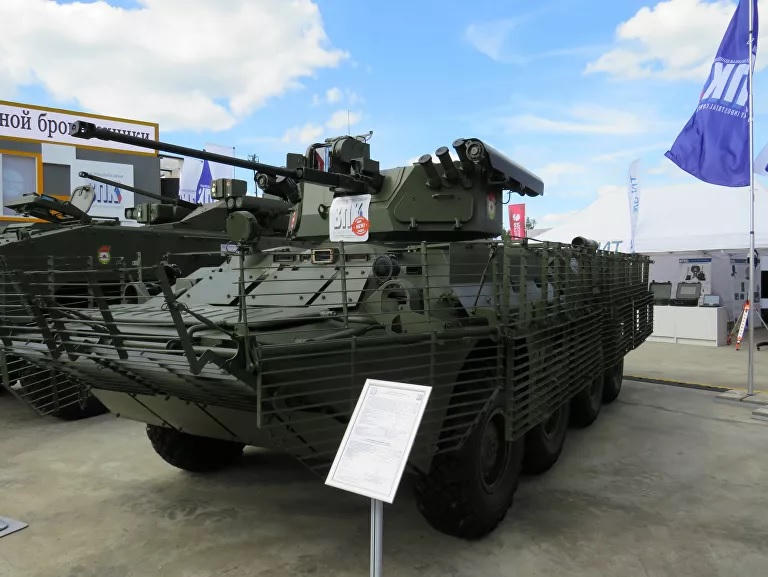 Ngoài các phương tiện mới, Công ty Công nghiệp Quân sự giới thiệu phiên bản xe bọc thép chở quân bánh lốp từ BTR-82AT. Ngoài lớp vỏ bọc thép tăng cường khả năng bảo vệ, xe còn được trang bị màn chắn bảo vệ, hệ thống tên lửa chống tăng Kornet, mô-đun chiến đấu không người lái BTR-BM mới.