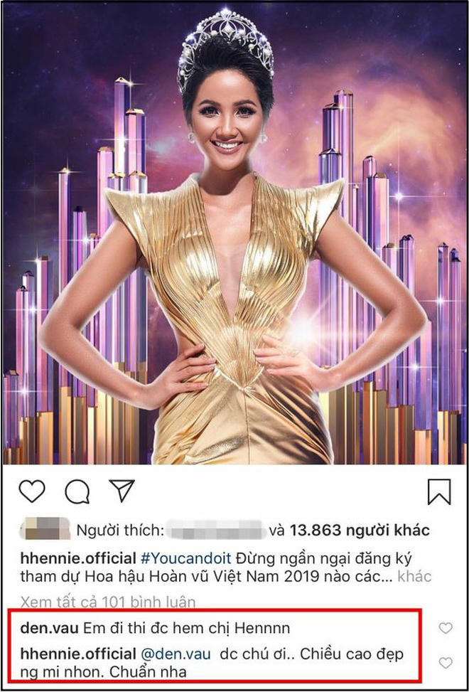 Mới đây, trên Instagram cá nhân của mình, Hoa hậu H’Hen Niê đã trực tiếp đăng hình ảnh kèm lời chúc mừng sinh nhật đến nam rapper. Cô viết: "Birthday anh Đen Vâu".