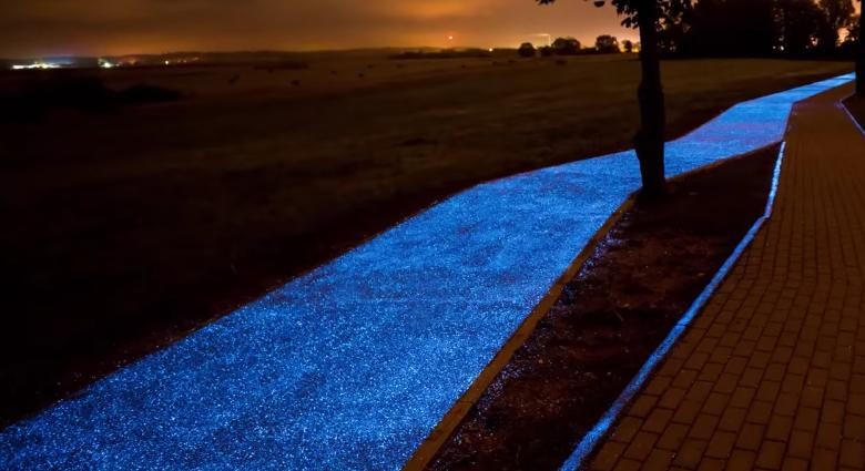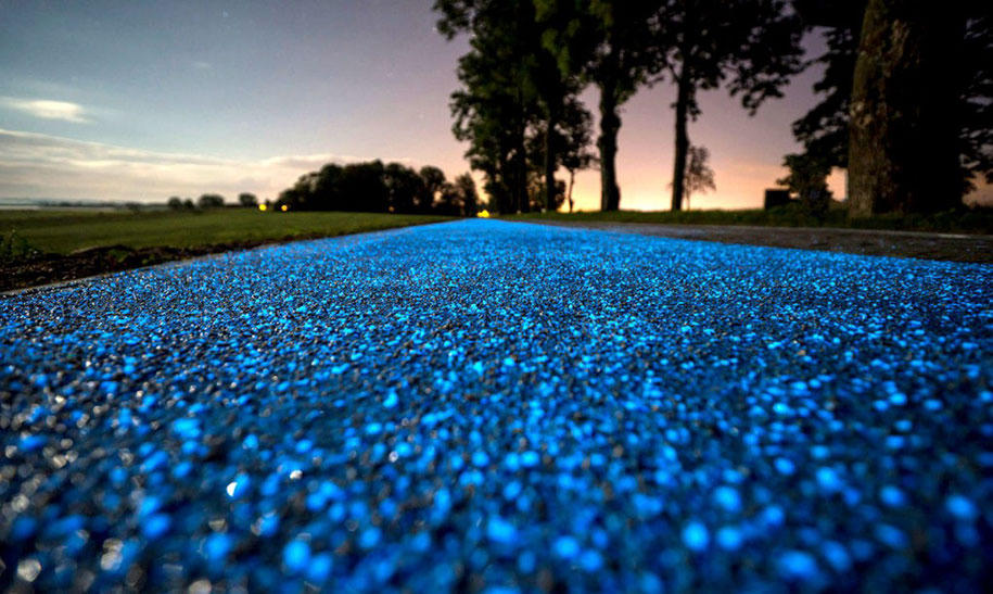 Điều bí mật làm con đường tự phát sáng chính là lớp sơn phản quang đặc biệt có khả năng hấp thu ánh sáng mặt trời và tỏa ra ánh sáng xanh nhạt trong khoảng 10 tiếng sau khi mặt trời đã lặn.