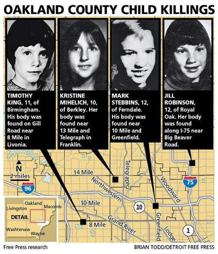 Trong vòng 13 tháng của hai năm 1976-1977 có ít nhất bốn đứa trẻ bị bắt cóc và bị giết, xác của chúng được phát hiện ở nhiều nơi trong địa phận hạt Oakland, bang Michigan. Những đứa trẻ bị giam giữ đâu đó trong khoảng từ 4 đến 19 ngày trước khi bị sát hại. Những cái chết đã gây hoảng loạn trong dân chúng và chính quyền đã tổ chức một cuộc điều tra có thể nói là lớn nhất nước Mỹ thời đó nhưng kết quả cho đến nay, sau 37 năm vẫn gần như bằng không.