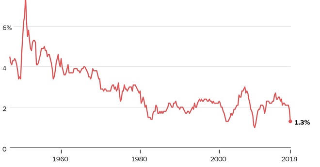 Kể từ đó, thu thuế doanh nghiệp của Mỹ chưa khi nào chạm lại mốc trên, cho đến năm nay. Theo thống kê của Bộ Ngân sách Mỹ, kể từ tháng 1 cho đến tháng 6/2018, thu thuế doanh nghiệp của Mỹ đã giảm 1/3 so với cùng kỳ của năm trước đó. Còn theo số liệu liên bang, mức giảm này đã thấp kỷ lục trong vòng 75 năm trở lại đây. “Nếu chúng ta không thay đổi cách tính thuế, tổng thu của nền kinh tế đã tăng lên”, ông Kimberly A. Clausing – một giáo sư về kinh tế học tại trường Đại học Reed ở Portland, Oregon chuyên về thuế doanh nghiệp, cho hay.