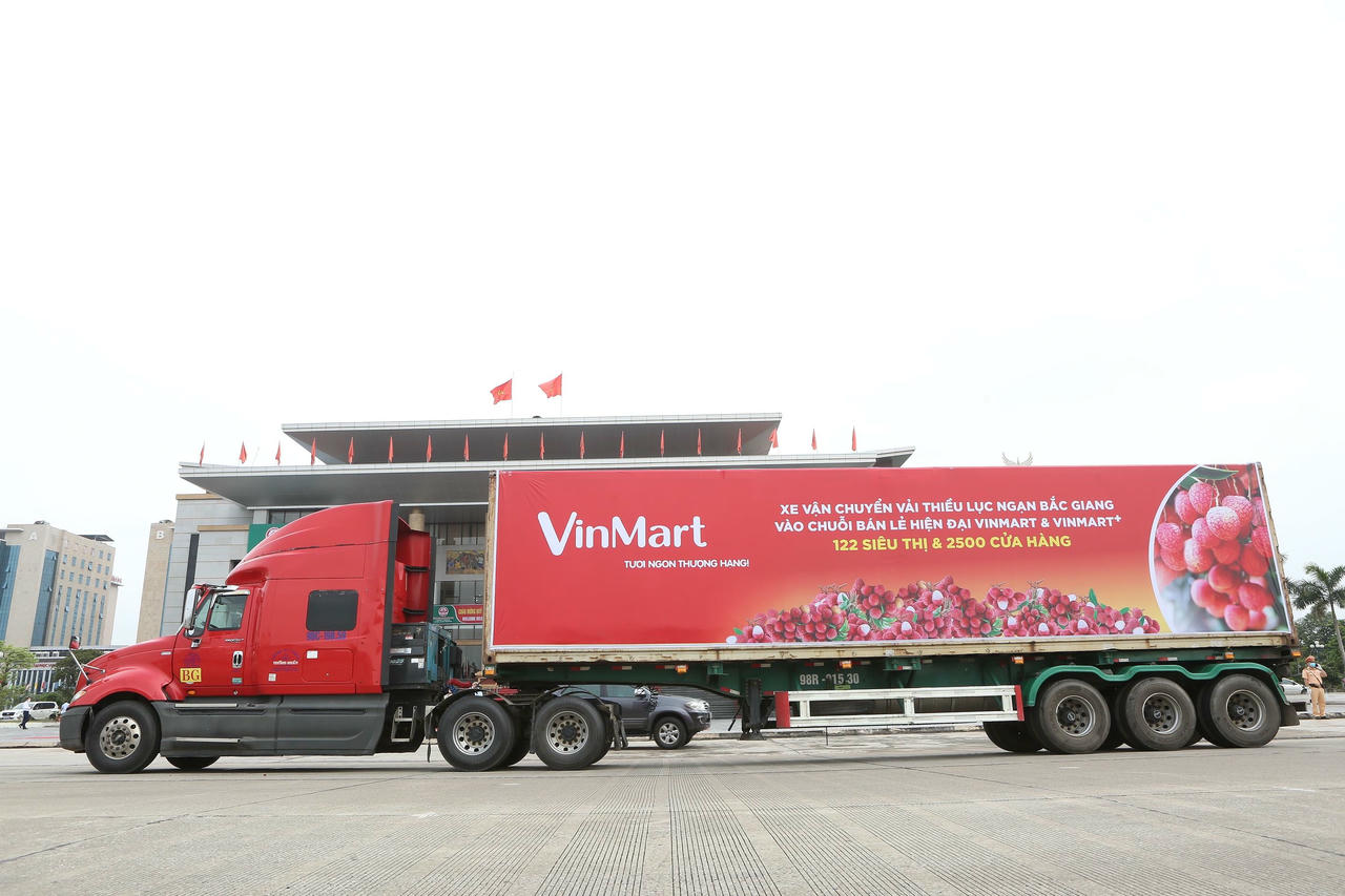 Xe vận chuyển vải thiều Lục Ngạn - Bắc Giang đến chuỗi siêu thị VinMart_VinMart+ |