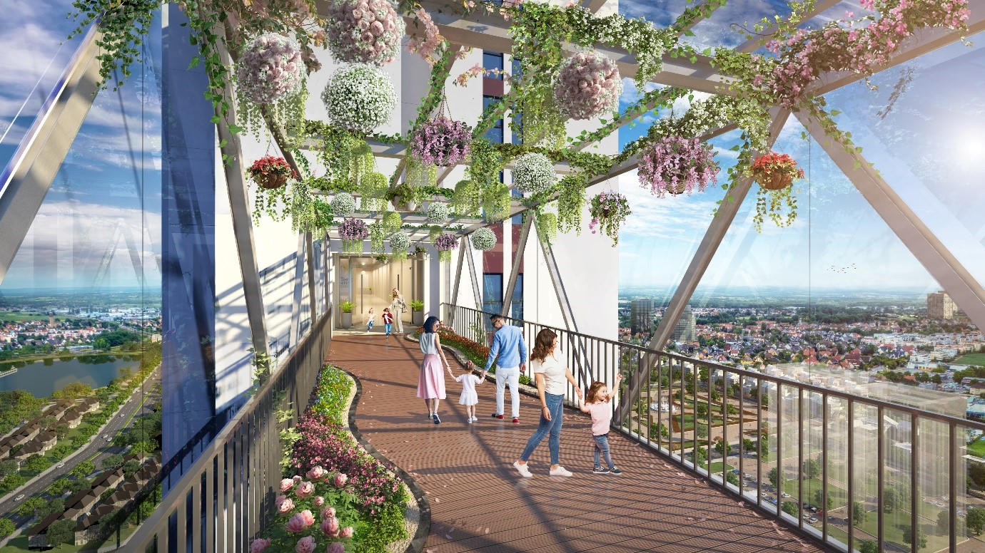 Bên cạnh đó, tại dự án, Văn Phú - Invest còn đưa vào thiết kế những tiện ích mang tính biểu tượng của khu vực như cầu kính trên tầng 33 nối liền 3 tòa cao tầng, được lấy cảm hứng từ tháp đôi Petronas của Malaysia. Cây cầu nối liền 3 toà tháp được bao phủ bởi kính trong chịu lực. Không chỉ mang dấu ấn kiến trúc, đây còn là nơi để cư dân có thể thư giãn và ngắm nhìn toàn cảnh khu vực phía Tây Hà Nội trong tầm mắt.