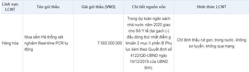Gói thầu mua sắm Hệ thống xét nghiệm Realtime PCR tự động có nguồn vốn trích từ dự toán ngân sách giao năm 2020 của Sở Y tế Quảng Nam.
