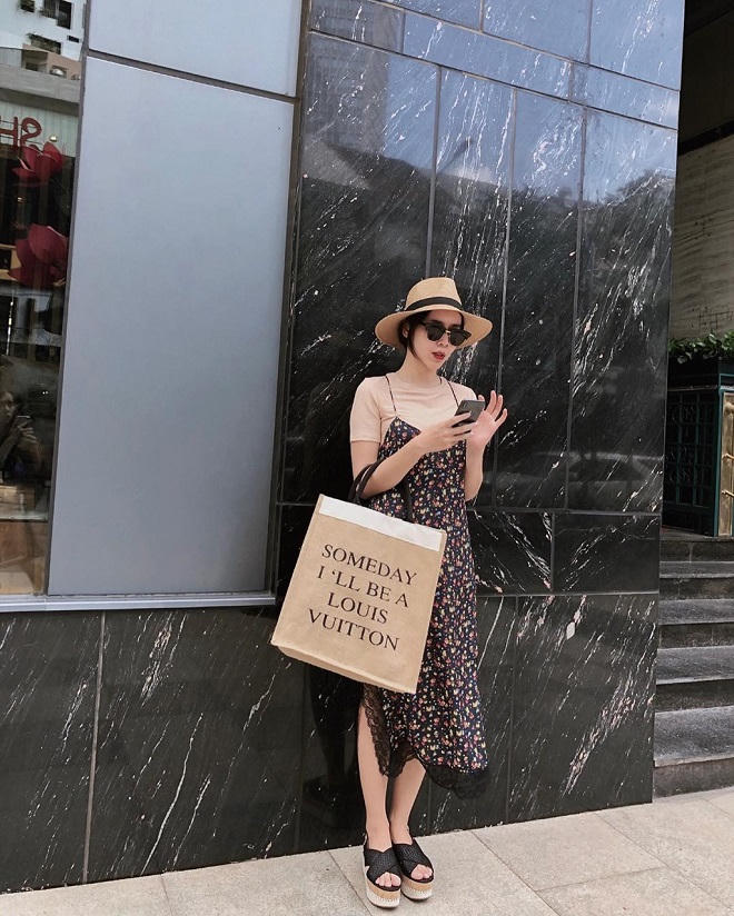 Những mẫu váy hai dây kết hợp cùng áo thun đồng điệu màu sắc được xem như xu hướng thời trang trong mùa hè năm nay. Mũ cói và túi tole là phụ kiện không thể thiếu khi diện cùng váy hoa phom dáng suông thoải mái.