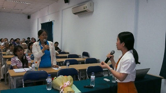 | ThS.BS.CKII Dương Nguyễn Hồng Trang, Giảng viên Bộ môn Nội Trường ĐH YK PNT (bên phải) đang tư vấn cho bệnh nhân. |