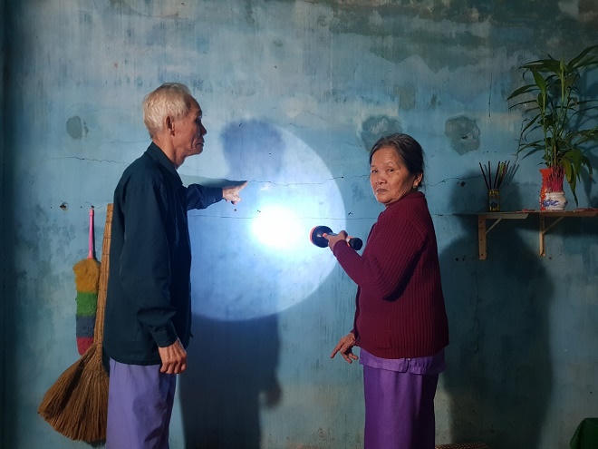Mấy hôm giữa tháng 11/2019 trời mưa, nước chảy vào các khe nứt khiến các bức tường càng thêm rệu rã, ông bà chỉ biết cầu trời mong nhà đừng sập. Bà Dồi liếc mắt như vẻ “ghen tị” với chồng: “Ông ấy bị điếc nên đêm ngủ vẫn ngon giấc, còn tôi nhiều đêm mất ngủ vì tiếng ồn nhà máy “tra tấn””.