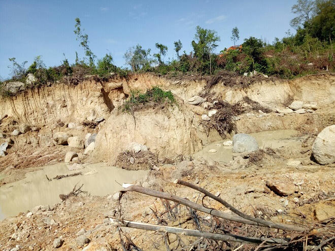 Bà con bức xúc rào chắn ngang dự án không cho người công ty vào, họ mới xin bà con gỡ rào, xin tự động nghỉ, không làm nữa. Vẫn chỉ là hứa lèo, trạm trộn vẫn lén lút làm, Cảnh sát môi trường vào cuộc xử phạt, rồi Chủ tịch UBND huyện cũng xử phạt kịch khung và tới bây giờ trạm trộn vẫn tái phạm ì xèo.