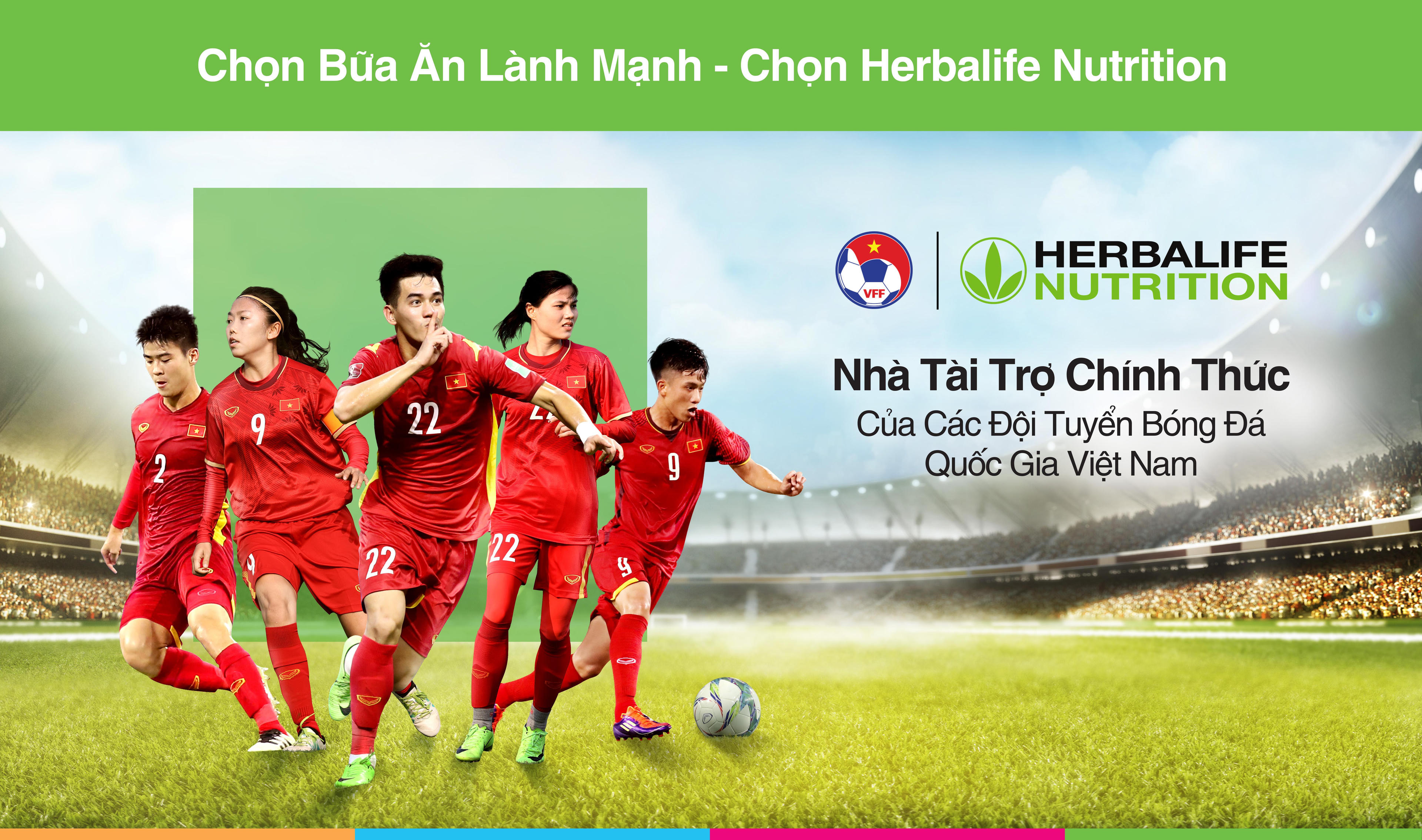 Nhận thấy sức ảnh hưởng của Đội tuyển bóng đá quốc gia Việt Nam về lối sống năng động, cùng tầm quan trọng của “bữa ăn lành mạnh” trong bóng đá nói riêng và cộng đồng nói chung, Herbalife Việt Nam đã chính thức ký kết thỏa thuận với Liên đoàn Bóng đá Việt Nam (VFF). Đây là lần đầu tiên Herbalife Việt Nam trở thành nhà tài trợ chính thức của đội tuyển bóng đá quốc gia Nam, Nữ và các đội tuyển bóng đá U22, U23, Olympic từ năm 2021 đến 2024.