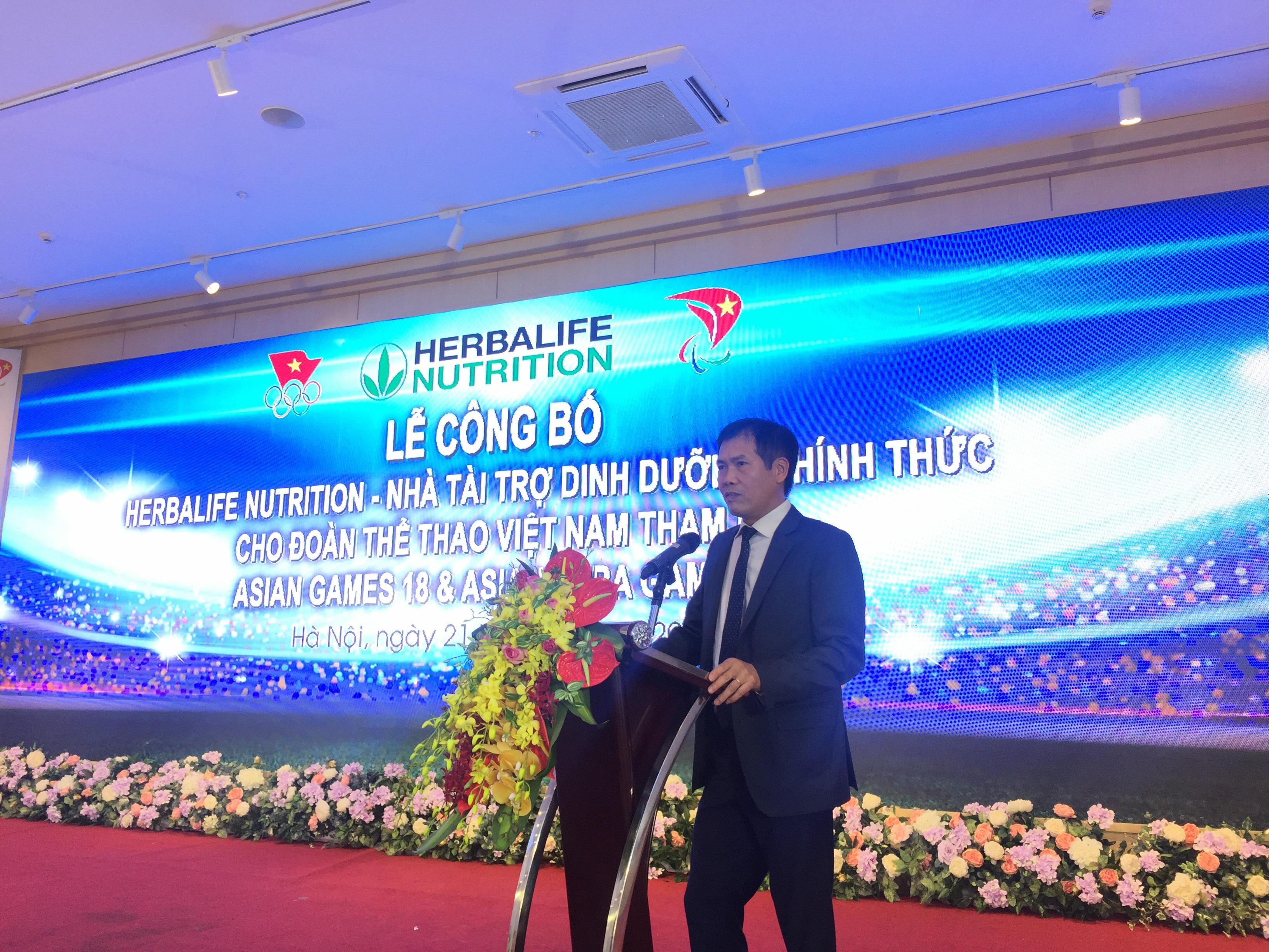 Ông Trần Đức Phấn, Phó Tổng cục trưởng Tổng cục thể thao Việt Nam cũng có đôi lời phát biểu, “Về cơ bản đoàn Thể thao Việt Nam đã hoàn thành xuất sắc nhiệm vụ của mình và đạt được nhiều thành tích cao trong nhiều giải đấu quốc tế. Để đạt được thành tích cao như vậy là nhờ vào sự ủng hộ của các bộ ban ngành trung ương, các đơn vị thể thao, các tổ chức… và đặc biệt là tập đoàn Herbalife đã ủng hộ, giúp đỡ và là nhà tài trợ chính về sinh dưỡng cho các vận động viên. Do vậy các vận động viện đã đạt được nhiều thành tích trong những nam qua trên những đấu trường lớn như ASIAD và Olympics. Năm nay, chúng tôi hy vọng dưới sự giúp đỡ của Herbalife các vận động viên tham gia Asian Game và Asian Para Game 2018 sẽ thu được nhiều thành tích cao nhất, với ít nhất 3 huy chương vàng theo nhiệm vụ mà Bộ trưởng Bộ Văn hóa, Thể thao và Du lịch Nguyễn Ngọc Thiện đặt ra”.