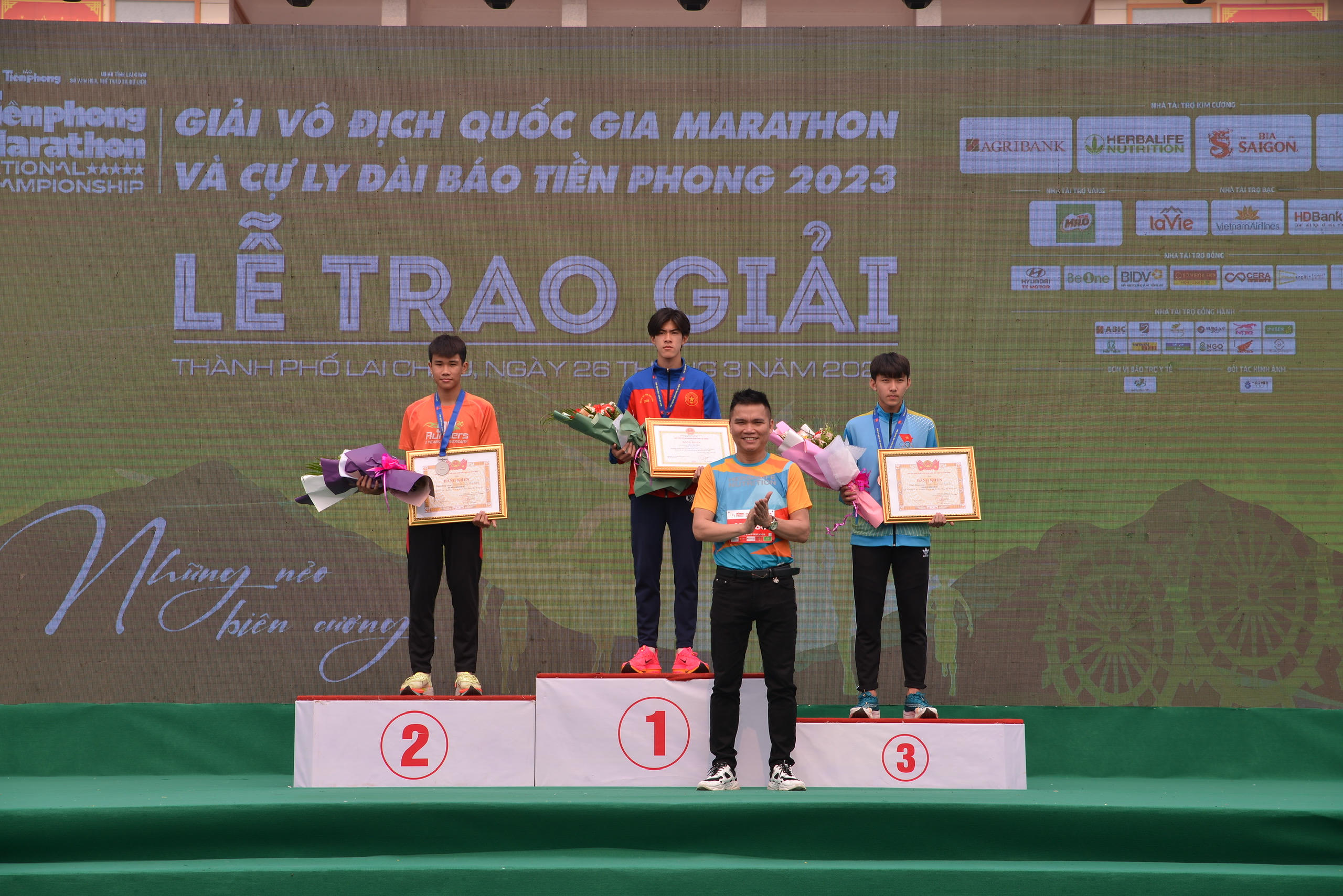 Đại diện Herbalife Việt Nam trao giải cho các vận động viên. |