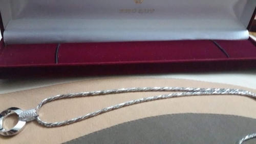 Ngày 18/8 vừa qua, một lần nữa sợi dây chuyền vàng trắng này lại bị đứt. Anh D. đã mang đến Showroom vàng Phú Quý (30 Trần Nhân Tông, Hai Bà Trưng, Hà Nội) nơi anh đã mua để nối dây.