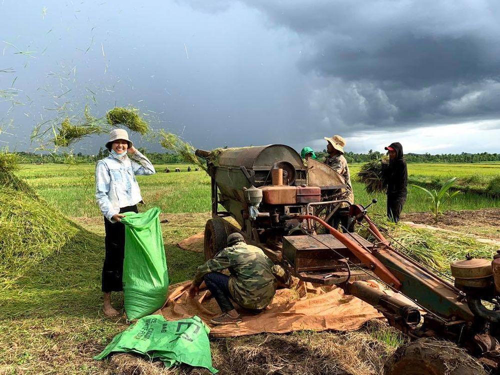 Hoa hậu vui vẻ với công việc đồng áng. (Ảnh: FBNV) |