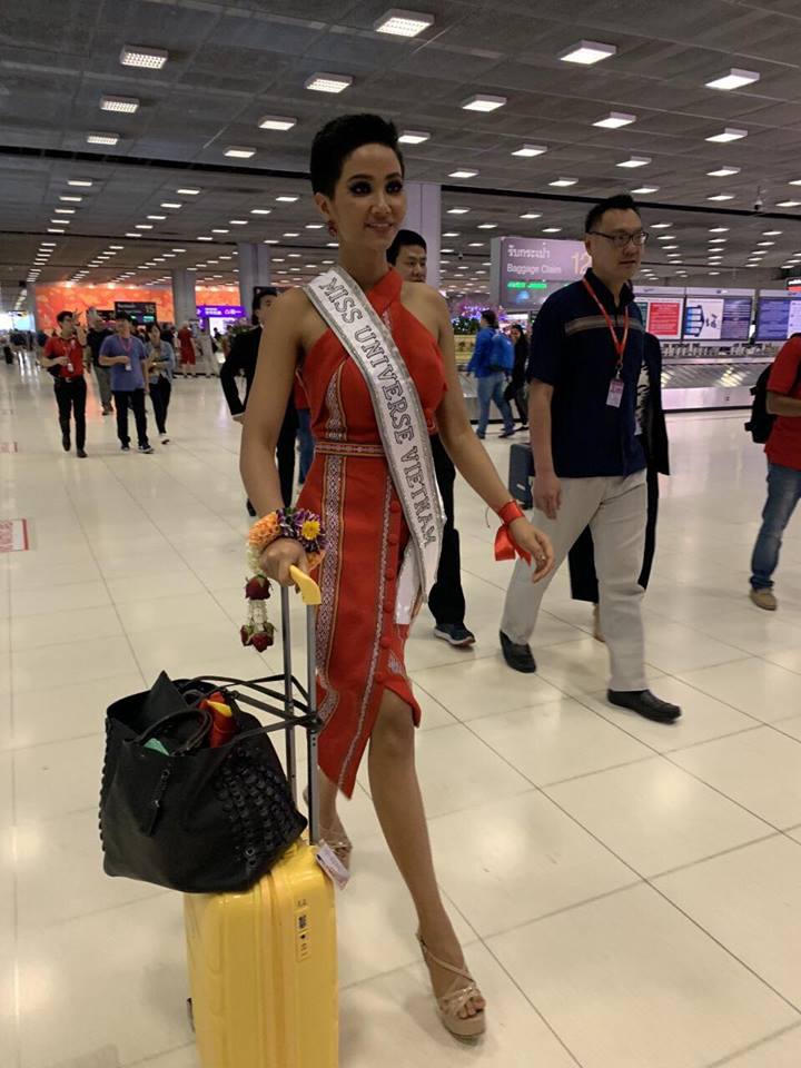 Sau khoảng 1,5 giờ, H'Hen Niê đã đáp chuyến bay xuống Thủ đô Băng Cốc - Thái Lan. Năm nay hành trình Miss Universe được tổ chức tại Thái Lan, quốc gia khá gần với Việt Nam, nên sau khi đáp xuống chuyến bay H'Hen Niê trông vẫn tràn đầy năng lượng.