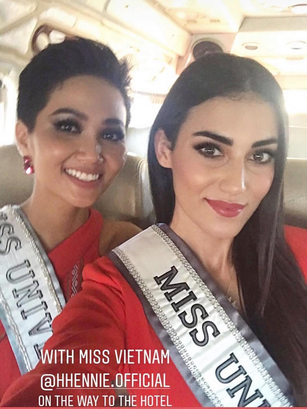 Cùng với đó H'Hen Niê cũng hội ngộ Hoa hậu Malta - Francesca Mifsud, đây là người bạn đầu tiên của cô khi vừa đặt chân đến Thái Lan.