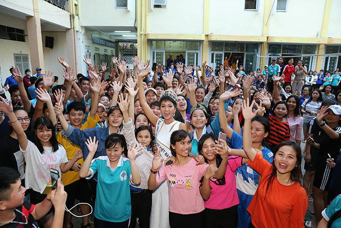 Hoa hậu được các thầy cô và sinh viên chào đón nồng nhiệt. Cô đã truyền cảm hứng và sự tự tin đến các sinh viên người dân tộc đang học tại trường.