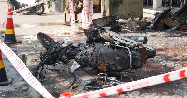 Trong đó, có 1 chiếc ô tô 4 chỗ và 3 xe máy cháy nham nhở |