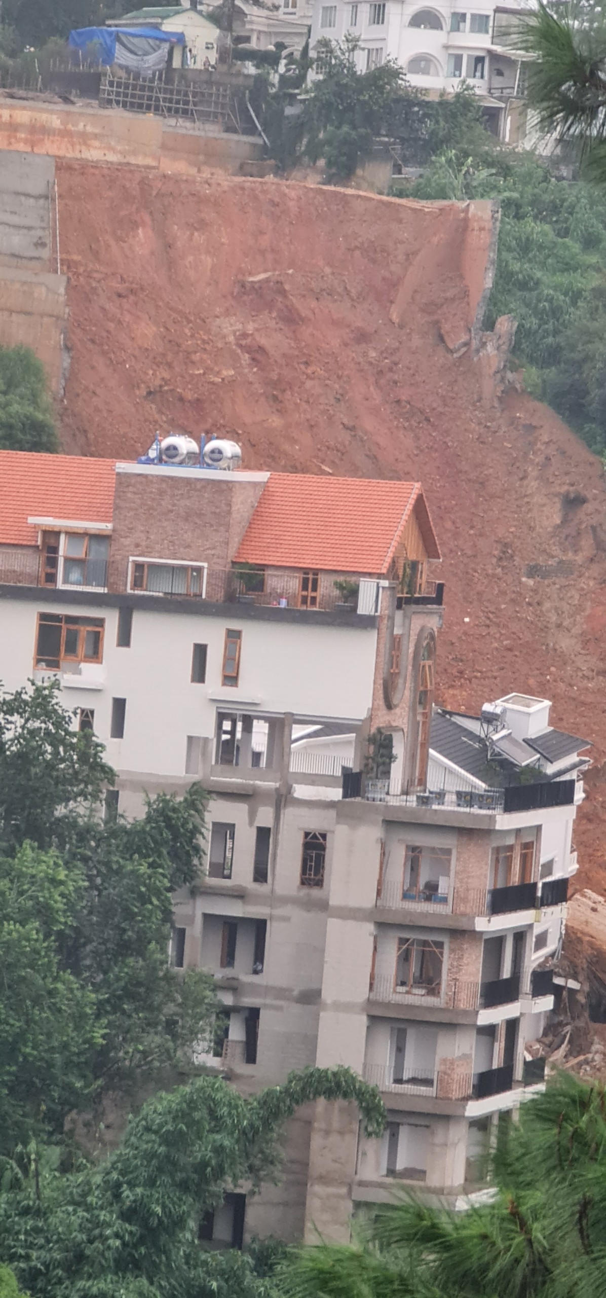 Rạng sáng 29/6, Đà Lạt mưa lớn khiến bờ ta luy cao khoảng 30 m, dài 40 m ở hẻm 36 đường Hoàng Hoa Thám đổ sập xuống dưới.