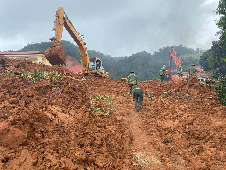 Đến khoảng 15h15p, lực lượng cứu nạn cứu hộ đã tìm thấy 12 thi thể bị vùi lấp, 10 cán bộ chiến sĩ còn lại cũng đang được các lực lượng tại chỗ khẩn trương tìm kiếm. Ở khu vực bên ngoài, nhiều đoạn đường vào hiện trường bị đứt gãy, lực lượng cứu hộ cùng nhiều phương tiện máy móc cơ giới được huy động để khắc phục, tiếp cận hiện trường trong thời gian sớm nhất.