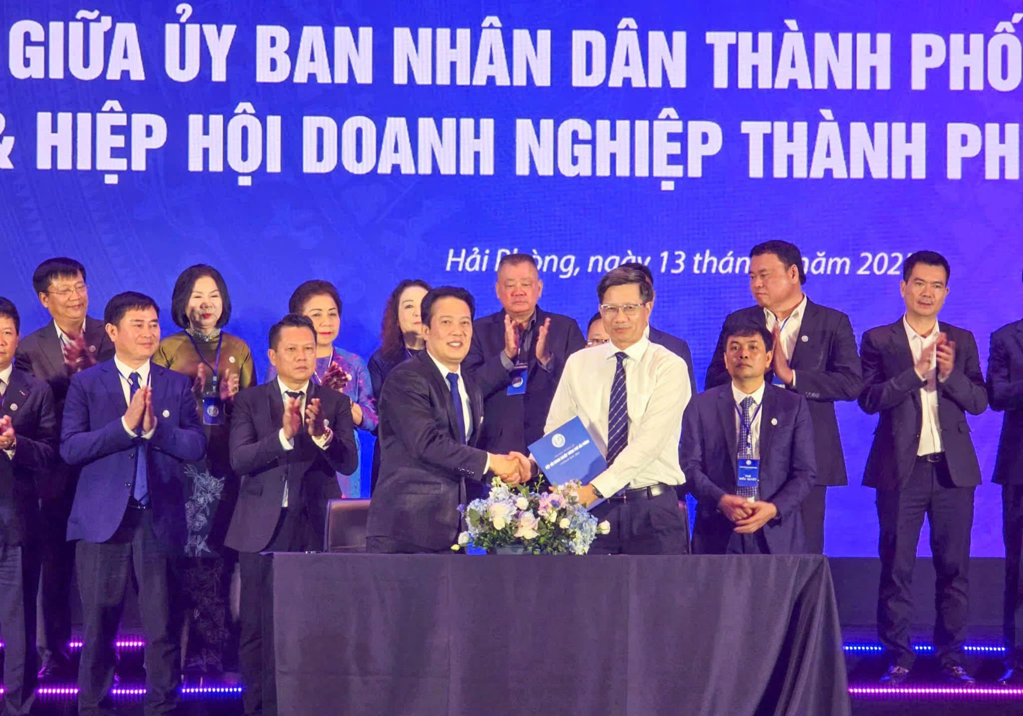 Nhân dịp này, UBND TP Hải Phòng và Hiệp hội Doanh nghiệp Hải Phòng đã ký cam kết phối hợp, góp phần nâng cao hiệu quả quản lý nhà nước trong việc xây dựng và thực thi các chính sách phát triển kinh tế - xã hội của TP, đồng thời hỗ trợ cộng đồng DN nâng cao năng lực cạnh tranh, cải thiện môi trường đầu tư, kinh doanh; thúc đẩy vai trò của khu vực kinh tế tư nhân trên địa bàn TP. Bên cạnh đó, tại Hội nghị cũng đã diễn ra Lễ Ký kết thỏa thuận hợp tác giữa Chi nhánh VCCI Duyên hải Bắc Bộ và Hiệp hội doanh nghiệp TP Hải Phòng.