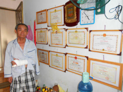 Nếu không nhìn thấy những tấm bằng khen, giấy khen của ông lão, hay nghe nhân chứng kể lại thì thật khó tin ông lão nhỏ thó này lại có tài “bắt cướp”. Ðã ở tuổi gần sáu mươi lại mang thêm bệnh hen suyễn, vậy mà ông lão cứ bắt cướp... ngon ơ. Hỏi ông có sợ bọn cướp không?