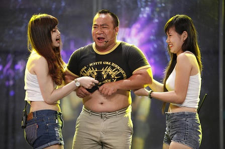 Ông bố trẻ Hiếu Hiền bạo gan tham gia cuộc chơi nhiều thử thách và đã “ăn đủ” với nhiều kỉ niệm nhớ đời. Trong gameshow này, “chú lùn” đã bị hai cô gái sexy lột áo và xối nước vào mặt đến ướt nhẹp.