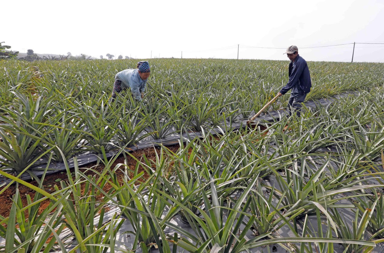 Người dân vay vốn đầu tư vào mô hình trồng dứa tại Ninh Bình. |