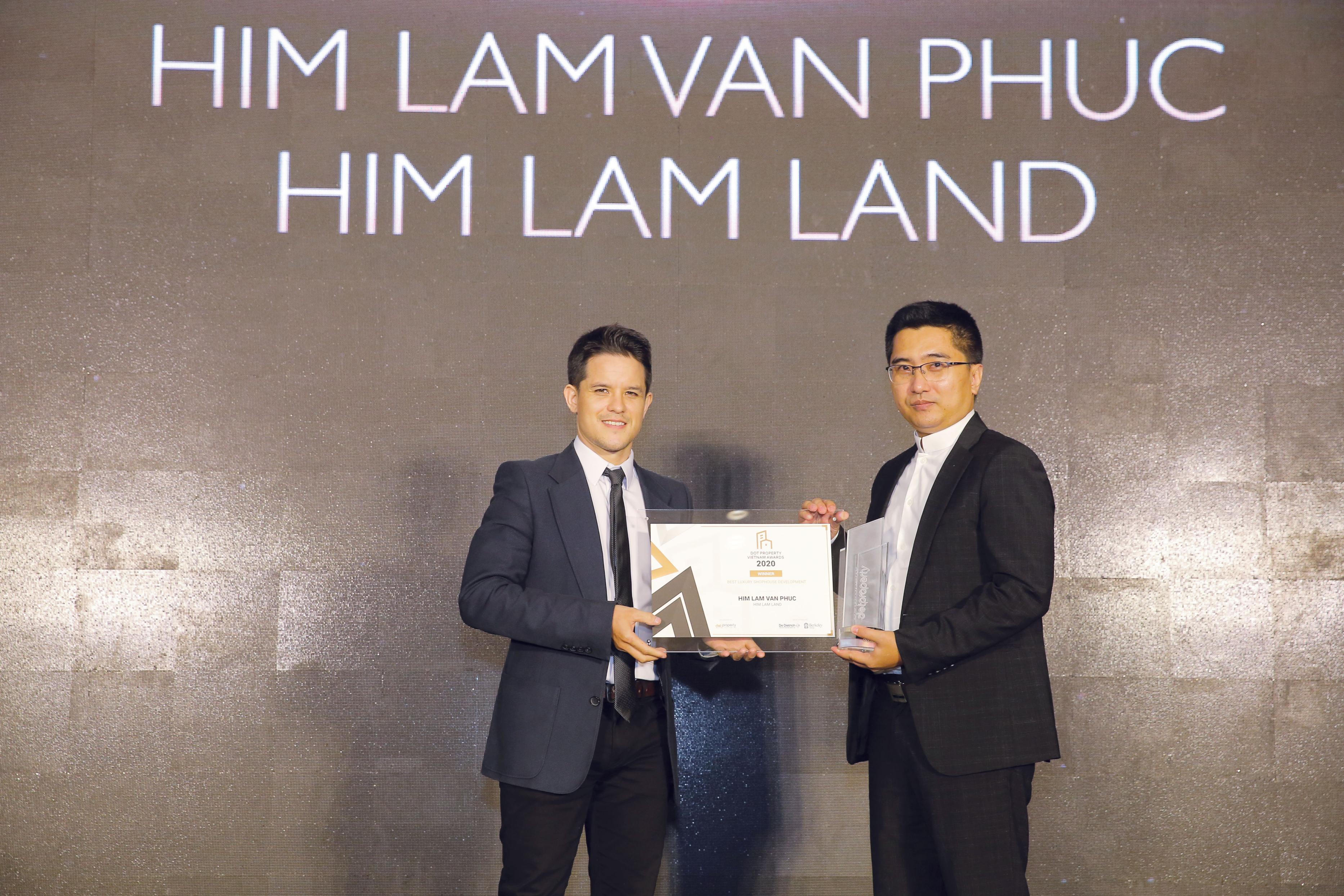 Năm nay, tại lễ trao giải Dot Property Vietnam Awards 2020, Công ty Cổ phần Kinh doanh Địa ốc Him Lam (Him Lam Land) đã xuất sắc vượt qua nhiều ứng cử viên để dành chiến thắng hạng mục giải thưởng “Nhà phát triển dự án phức hợp tốt nhất Việt Nam 2020”. Ngoài ra, dự án Him Lam Vạn Phúc cũng được vinh danh ở hạng mục “Dự án shophouse cao cấp tốt nhất Việt Nam 2020”.