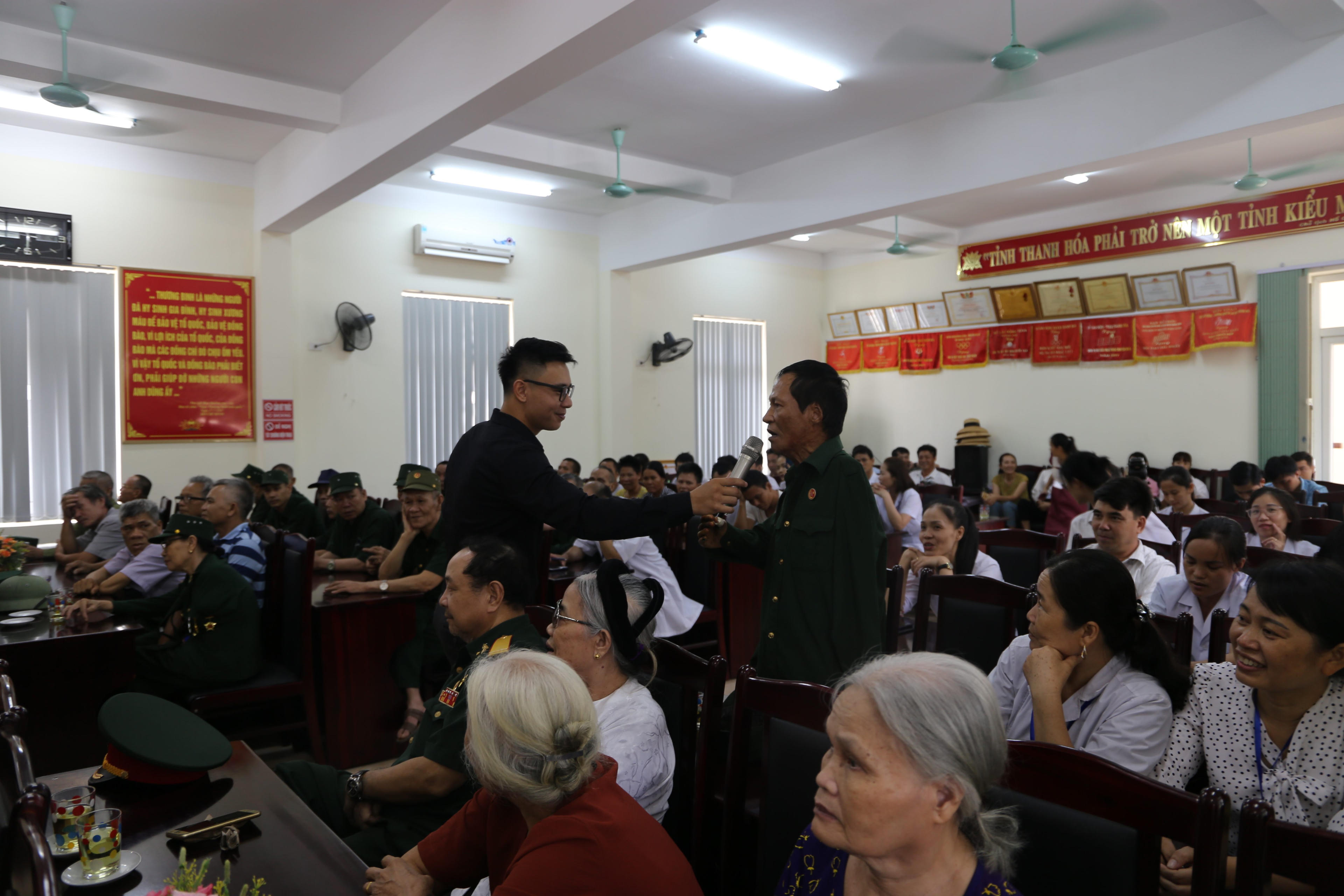 Đặc biệt, chứng kiến nhiều hoàn cảnh các thương, bệnh binh khó khăn, Đoàn đã tận tình thăm hỏi, sẻ chia để vơi bớt nỗi đau và di chứng do chiến tranh để lại. Ngoài những món quà vật chất, Đoàn cũng giao lưu và dành tặng lời ca tiếng hát tới các thương bệnh binh, cán bộ nhân viên tại các trung tâm điều dưỡng. Đón nhận tình cảm đó, những chiến sĩ cách mạng năm xưa đều không giấu nổi sự bồi hồi và xúc động khi nhớ lại khoảng thời gian chiến đấu vì hòa bình dân tộc vô cùng khó khăn và gian nan ấy.