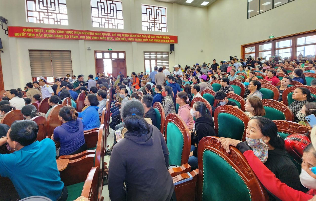Rất đông người dân có mặt tại Hội trường Chi Cục Kiểm ngư số 3 để chờ người thân trở về. Ảnh: Công Huy |