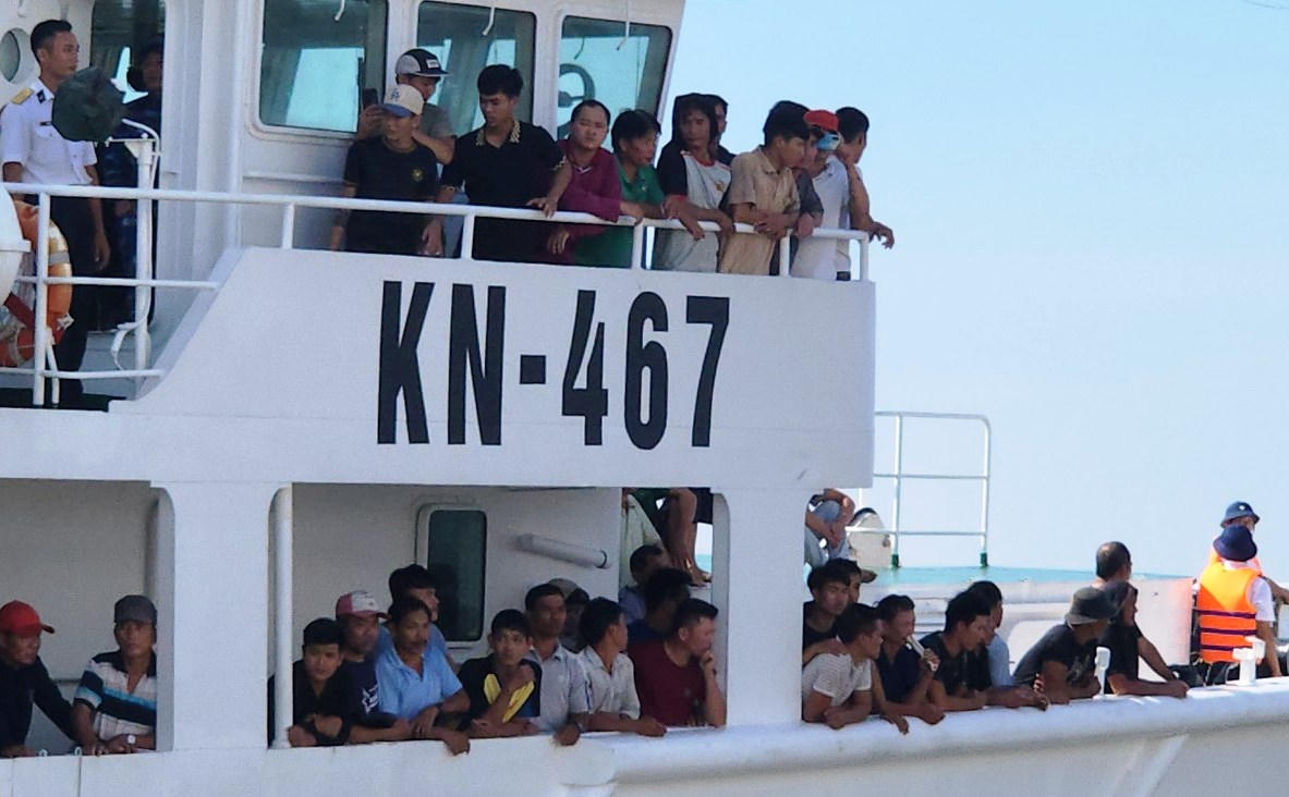 Có tổng cộng 83 ngư dân và 2 thi thể được lực lượng chức năng đưa về bờ. Ảnh Công Huy |