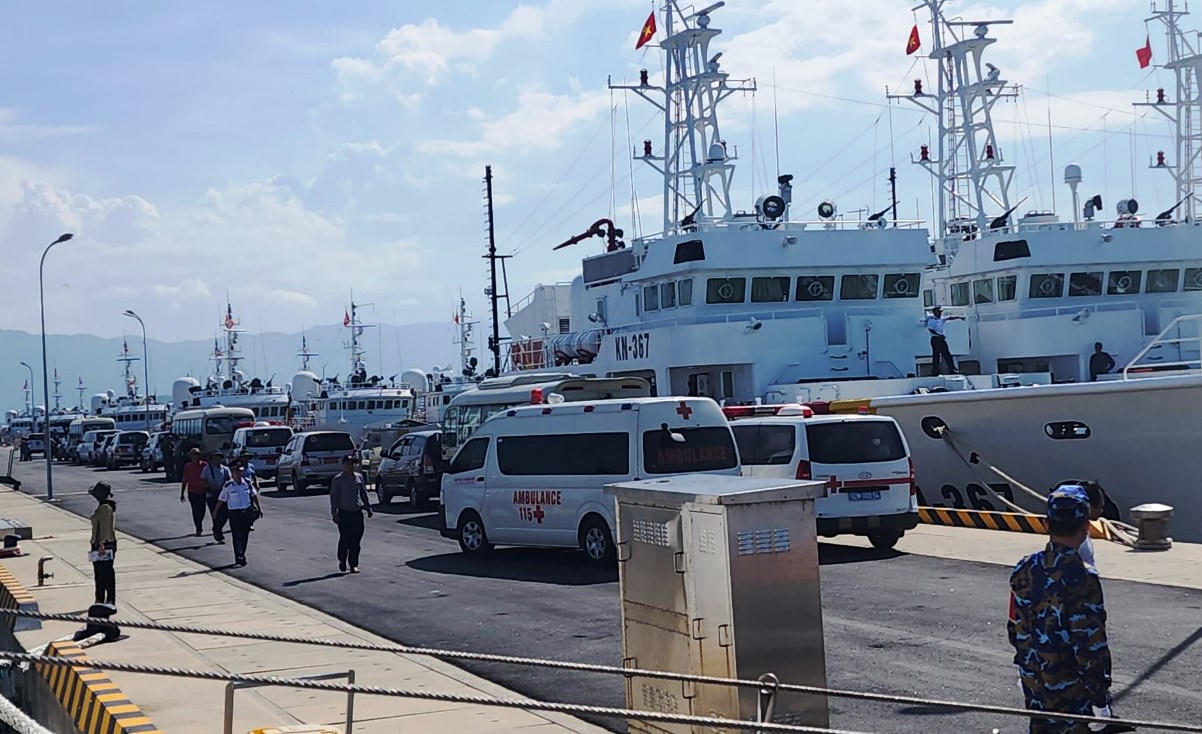 Trao đổi với báo chí tại cầu cảng, đại tá Đoàn Bảo Anh, Phó tư lệnh Vùng 3 Hải quân, cho hay: “Chúng tôi đã tiến hành chăm sóc y tế, hỏi han sức khỏe, bố trí chỗ ăn nghỉ cho ngư dân, đặc biệt là chú trọng bảo quản thi thể 2 ngư dân tử vong. Hiện các tàu tiếp tục tìm kiếm trên biển và sẵn sàng các nhiệm vụ khác khi có lệnh”.