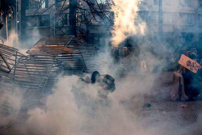 | Người biểu tình đụng độ với cảnh sát chống bạo động ở Santiago. Chile rung chuyển bởi nhiều tháng biểu tình, bắt đầu bằng các cuộc đình công vì giá vé tàu điện ngầm tăng... |