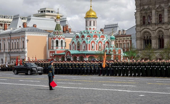 Lễ duyệt binh kỷ niệm 77 năm Ngày chiến thắng phát xít được tổ chức tại Quảng trường Đỏ, thủ đô Moskva ngày 9/5/2022. Ảnh: Mos.ru.