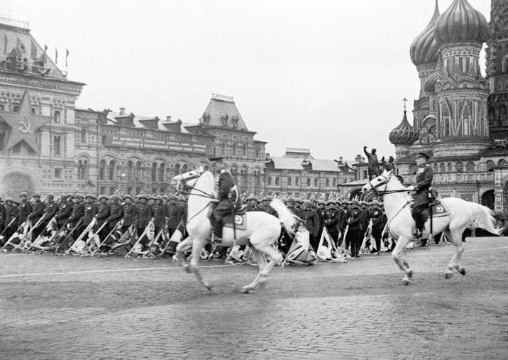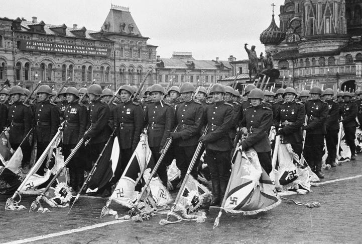 Lễ duyệt binh chào mừng chiến thắng phát xít Đức, ngày 24/6/1945, tại Quảng trường đỏ ở Thủ đô Moscow. Ảnh: Pastvu.com