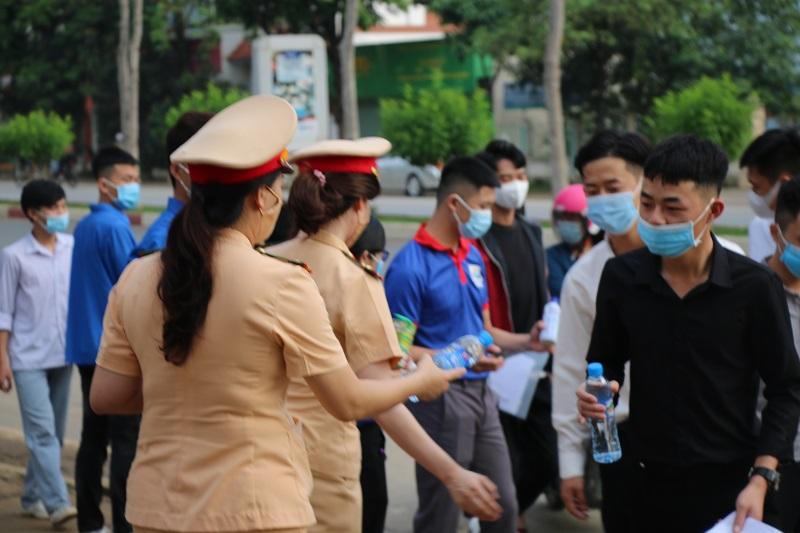 Hình ảnh cảnh sát giao thông Sơn La phát nước miễn phí cho thí sinh