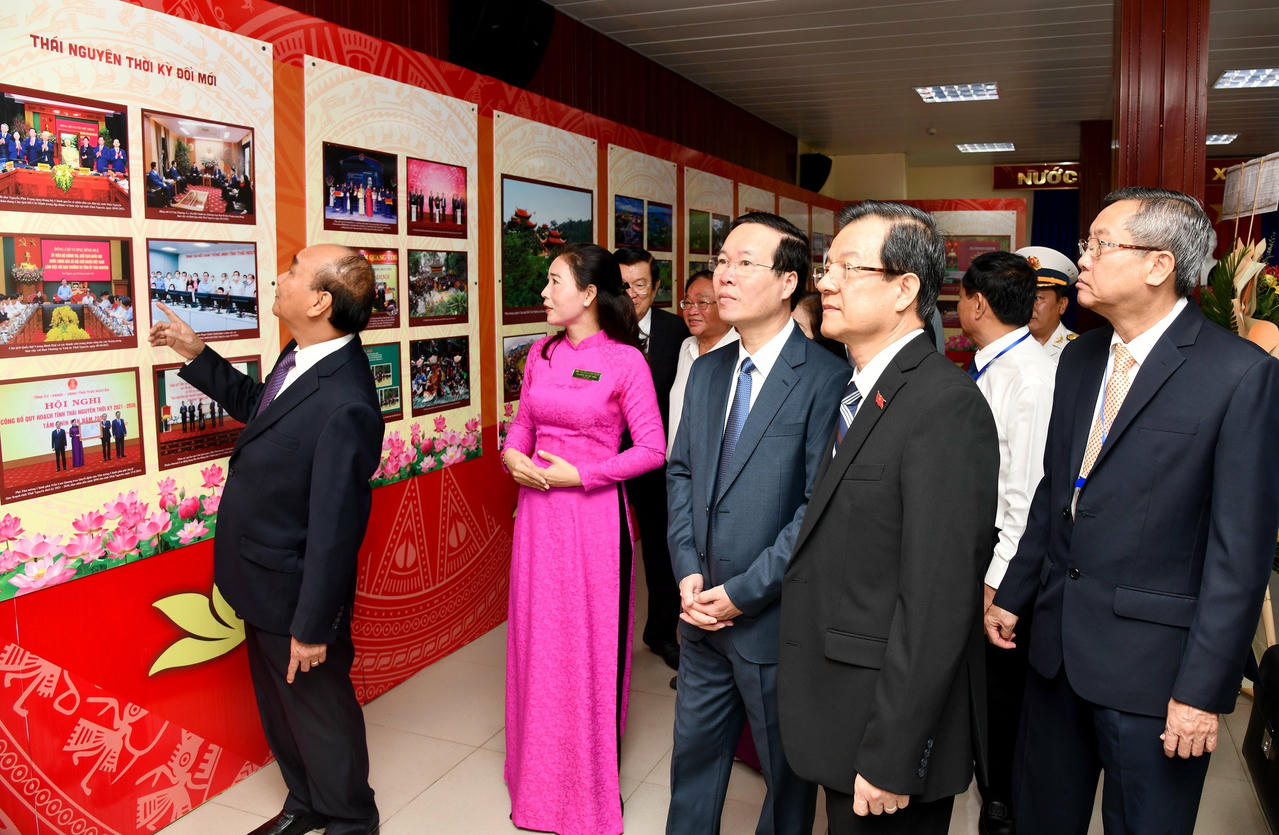 Chủ tịch nước Võ Văn Thưởng thăm quan nơi trưng bày hình ảnh, thông tin về cuộc đời, sự nghiệp cách mạng của Chủ tịch Tôn Đức Thắng |