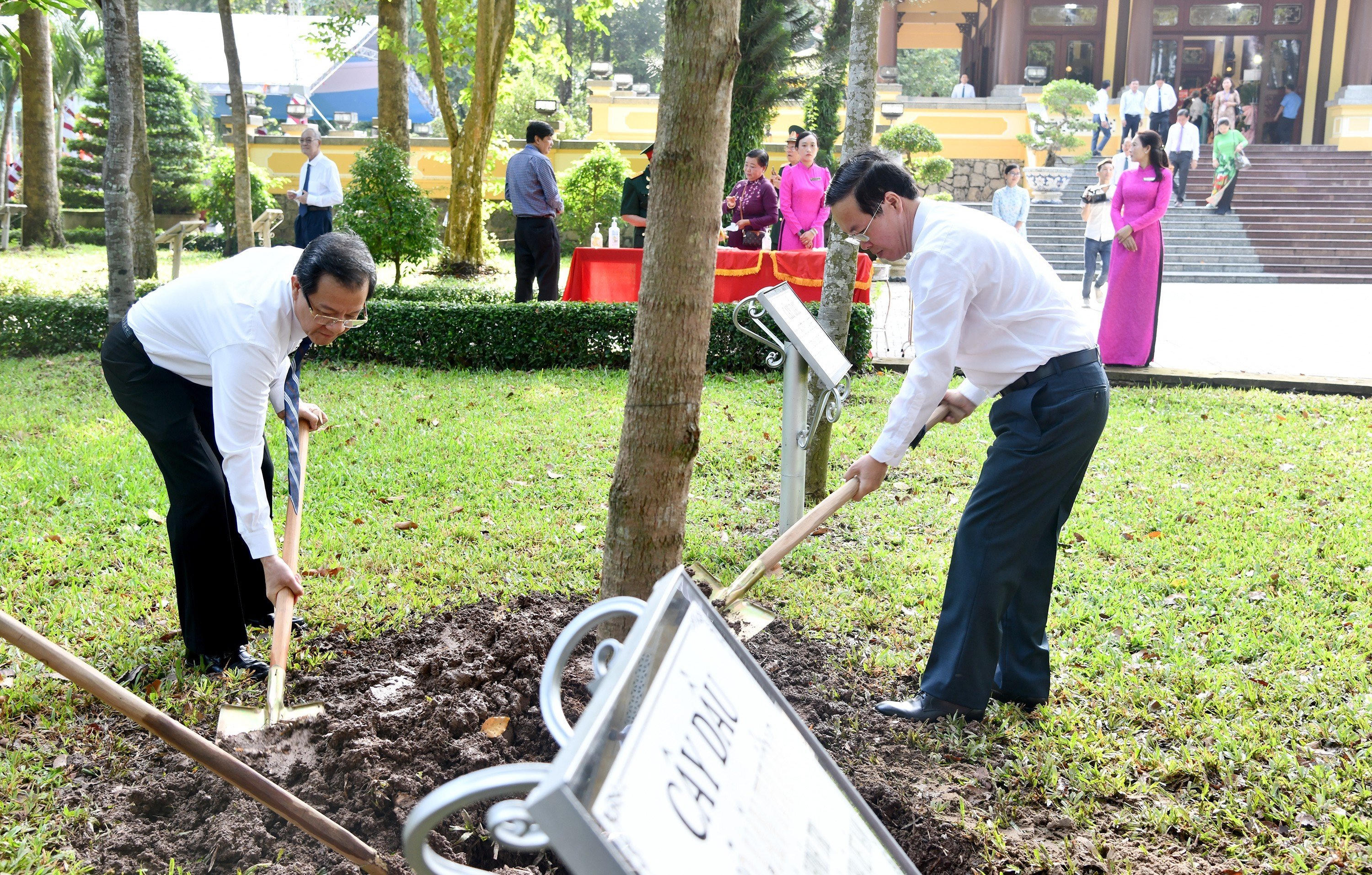 Chủ tịch nước Võ Văn Thưởng trồng cây lưu niệm tại khuôn viên Khu Lưu niệm Chủ tịch Tôn Đức Thắng |