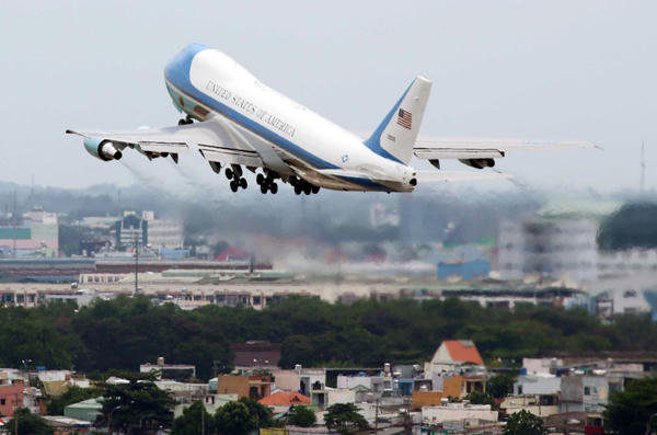 (PLO) - Chuyên cơ Air Force One đầu giờ chiều nay cất cánh từ sân bay Tân Sơn Nhất, chính thức khép lại chuyến thăm của Tổng thống Mỹ Barack Obama tại Việt Nam. Tổng thống Obama sau đó tới Nhật tham dự Hội nghị G7.