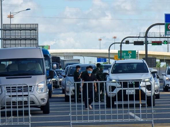 (PLVN) - Tại chốt kiểm soát QL5 đường đi Hà Nội – Hải Phòng, xảy ra ùn tắc nghiêm trọng do lái xe phải chờ dán logo cho phương tiện cũng như khai báo y tế, làm test nhanh COVID-19.