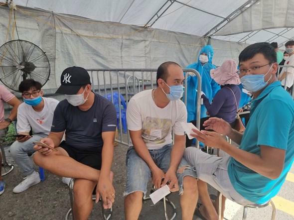 Lái xe chờ 3-4h đồng hồ để được khai báo y tế hoặc test COVID-19. |