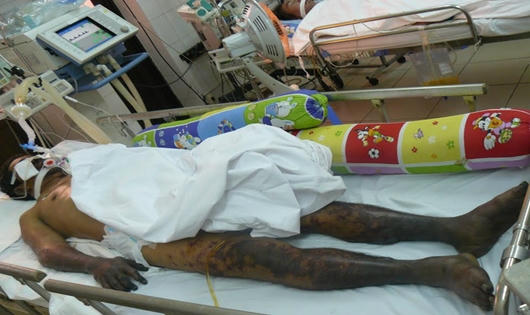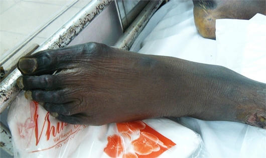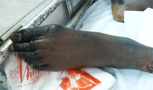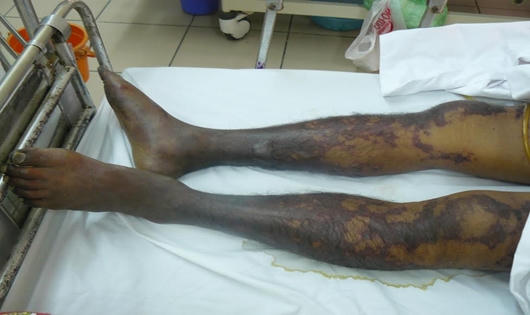 | Những bệnh nhân bị hoại tử do ăn tiết canh (Ảnh: TTT) |