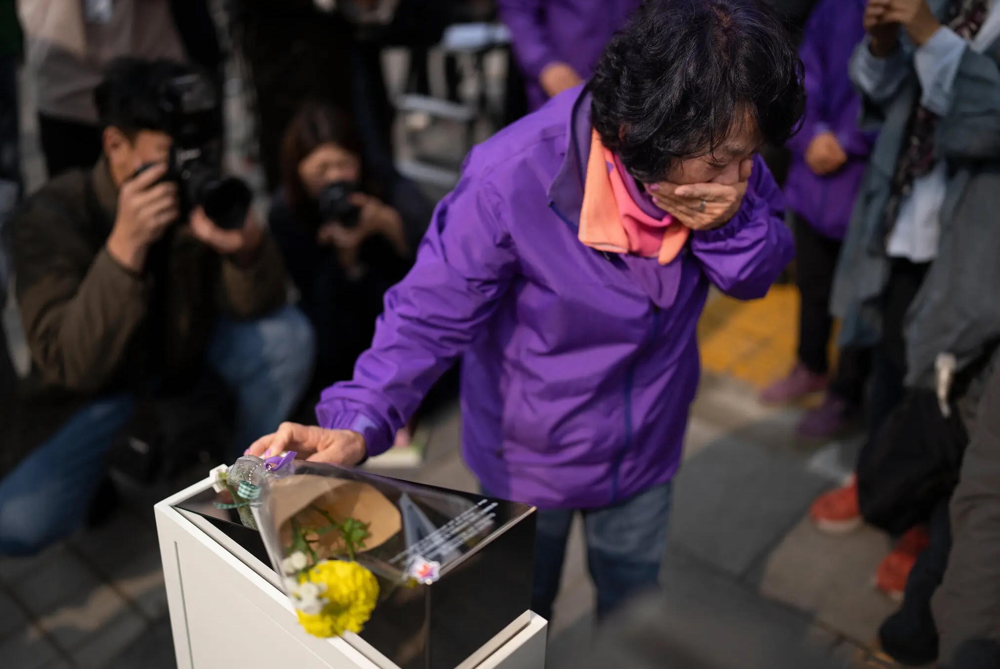 Người thân một nạn nhân tại đài tưởng niệm tạm thời gần Tòa thị chính Seoul. Ảnh: The New York Times.