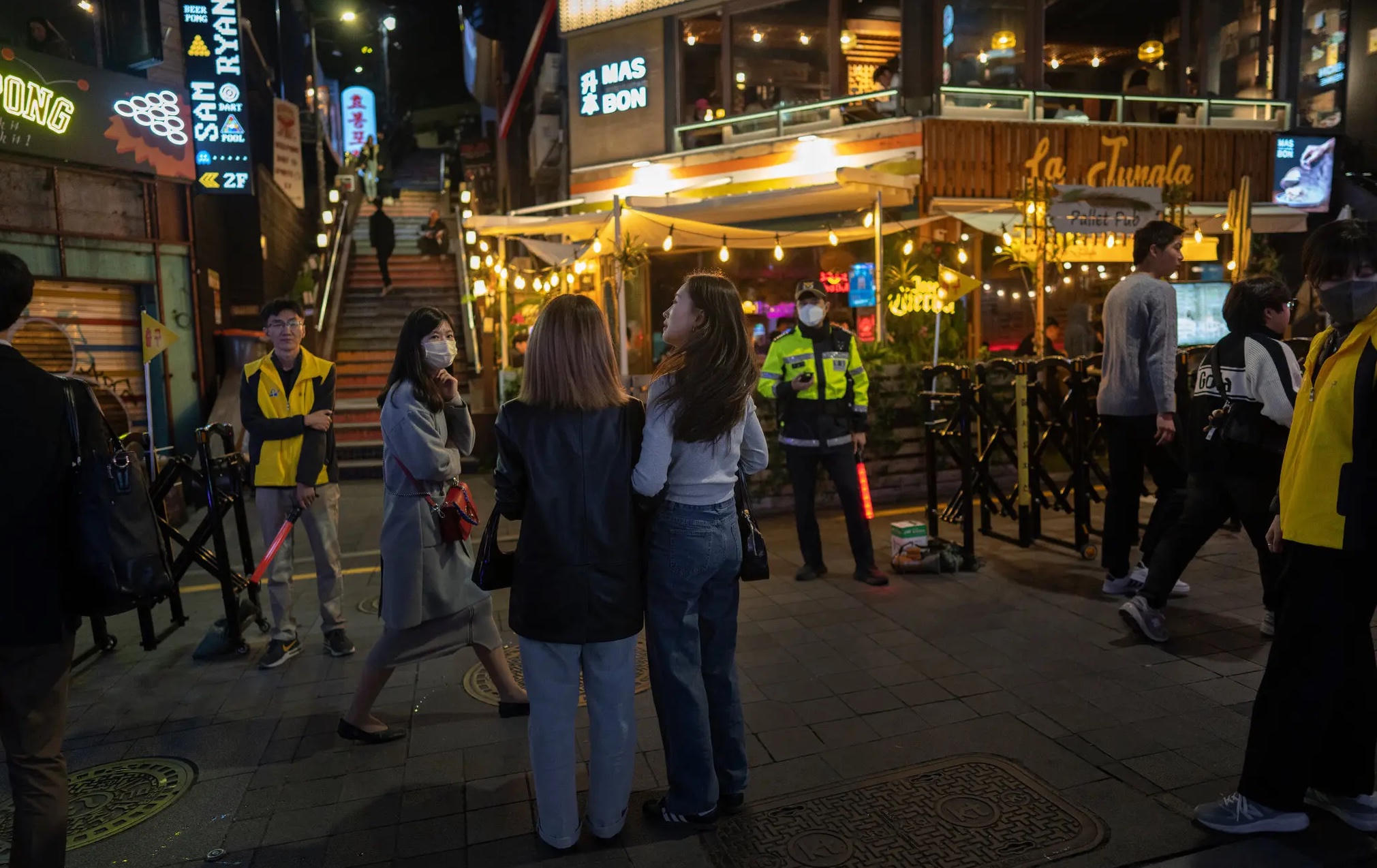 Trước đây, hàng năm, mỗi dịp Halloween, các con hẻm ở Itaewon tràn ngập không khí lễ hội. Nhưng năm nay, khu phố đã trở nên trầm lắng hơn. Ảnh: The New York Times.